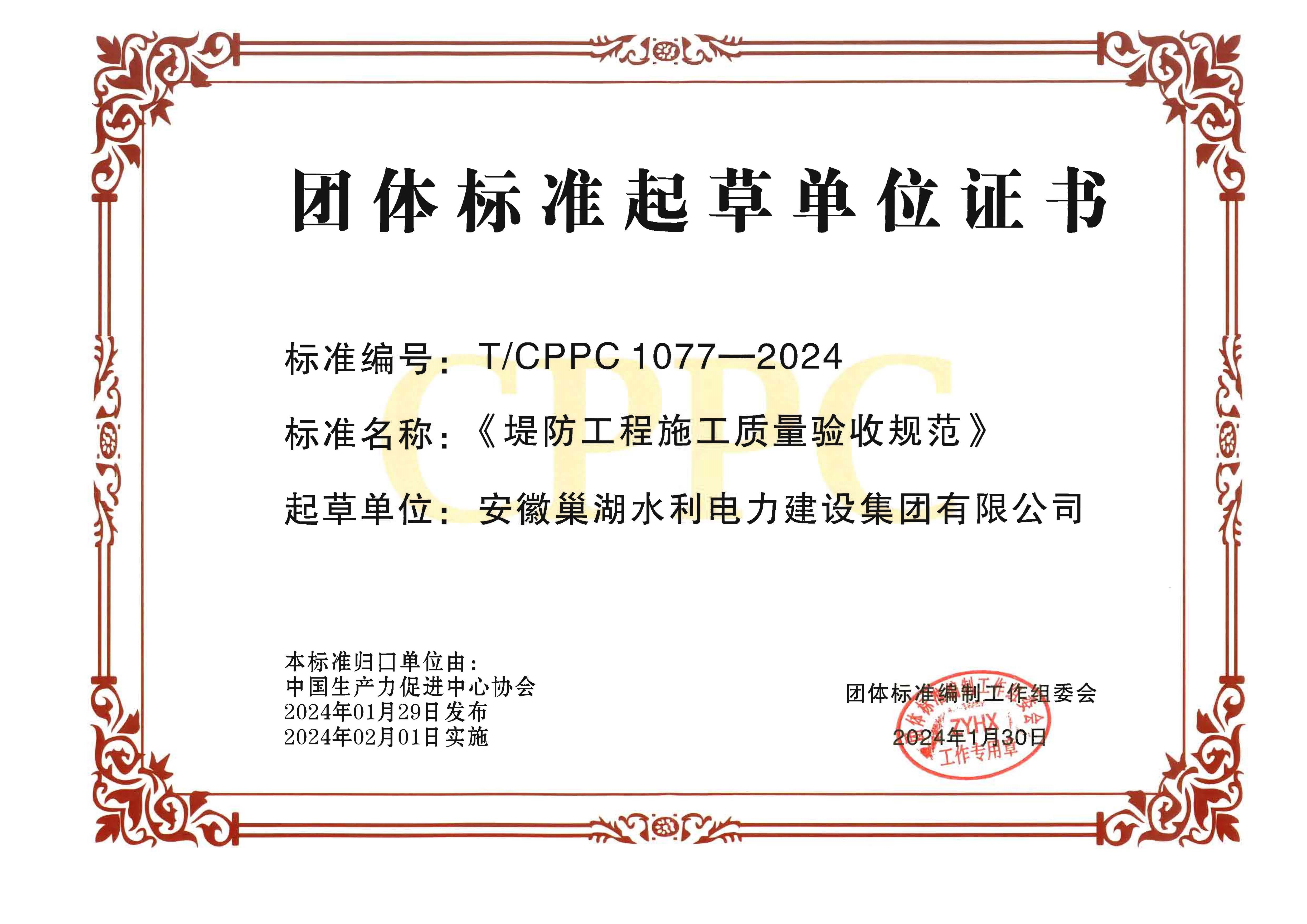 2024年度團體標準起草單位證書